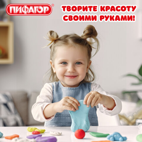 Пластилин ПИФАГОР обладает высоким качеством, прекрасными пластичными свойствами и мягкостью, легко принимает нужную форму. Не токсичен, безопасен для детей. В состав входят безопасные компоненты. Пластилин со стеками упакован в прозрачный пакет. Предназначен для детей старше 3-х лет.