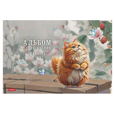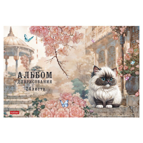 Альбом для рисования А4 16 л., скоба, обложка картон, HATBER, 205х290 мм, "Мяу-Котики",...
