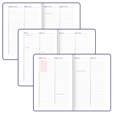 Твердая обложка, стилизованная под текстурную кожу, подходит для горячего тиснения. Ежедневник снабжен стильной застежкой, благодаря чему он не откроется в сумочке или портфеле, и листы не помнутся. Дополнением является закладка-ляссе, с помощью которой при необходимости можно быстро открыть нужную страницу, а также держатель для ручки, повышающий функциональность. На обложке и внутри ежедневника расположены удобные карманы для хранения бумаг и карточек. Ежедневник содержит обширный справочный материал, а также 7 страниц для записей и заметок. Уголки – закругленные.