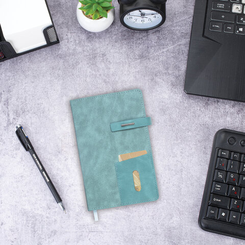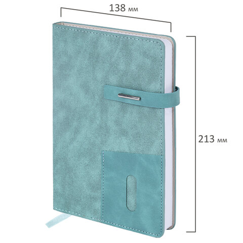 Внутренний блок включает 160 листов белой бумаги плотностью 70 г/м2. Благодаря стандартному формату А5 (138х213 мм) ежедневник удобно использовать как в офисе, так и на выездных деловых встречах.