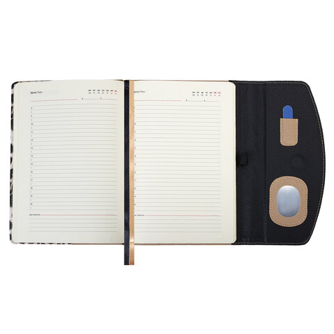 Недатированный ежедневник BRAUBERG в твёрдой обложке с анималистичным принтом и магнитным клапаном — стильное и компактное решение для эффективного планирования и создания имиджа пунктуального человека.