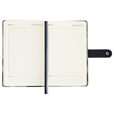 Внутренний блок включает 160 листов кремовой бумаги плотностью 70 г/м2. Благодаря стандартному формату А5 ежедневник удобно использовать как в офисе, так и на выездных деловых встречах.