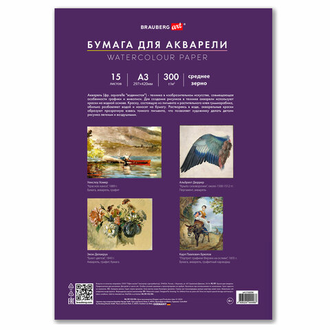 Бумага для акварели BRAUBERG ART "CLASSIC" содержит набор листов, специально предназначенных для рисования всеми видами водорастворимых красок. Подходит как для профессионалов, так и для любителей.
