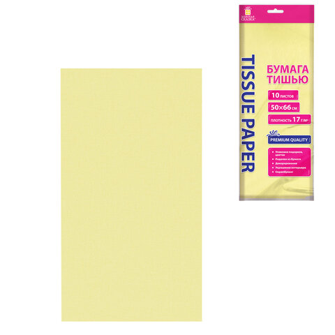 Тип бумаги: двусторонняя, матовая Внутренний блок: офсет Формат: 50х66 см Количество листов: 10 Цвет: лимонный Количество цветов: 1 Тип товара: бумага тишью Плотность бумаги: 17 г/м2 Прокрас бумаги: с 2 сторон Ширина: 500 мм Длина: 660 мм Индивидуальная упаковка: да Упаковка: пакет с европодвесом