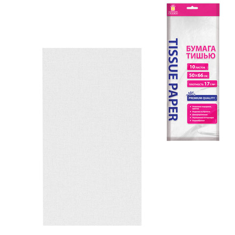Тип бумаги: двусторонняя, матовая Внутренний блок: офсет Формат: 50х66 см Количество листов: 10 Цвет: белый Количество цветов: 1 Тип товара: бумага тишью Плотность бумаги: 17 г/м2 Прокрас бумаги: с 2 сторон Ширина: 500 мм Длина: 660 мм Индивидуальная упаковка: да Упаковка: пакет с европодвесом