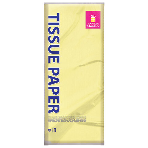 Тип бумаги: двусторонняя, матовая Внутренний блок: офсет Формат: 50х66 см Количество листов: 50 Цвет: лимонный Количество цветов: 1 Тип товара: бумага тишью Плотность бумаги: 17 г/м2 Прокрас бумаги: с 2 сторон Ширина: 500 мм Длина: 660 мм Индивидуальная упаковка: да Упаковка: пакет