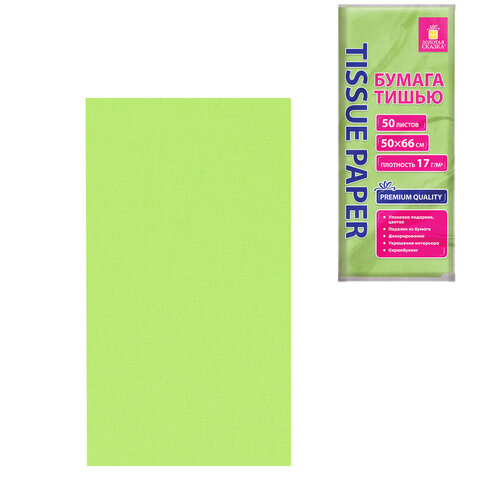 Тип бумаги: двусторонняя, матовая Внутренний блок: офсет Формат: 50х66 см Количество листов: 50 Цвет: салатовый Количество цветов: 1 Тип товара: бумага тишью Плотность бумаги: 17 г/м2 Прокрас бумаги: с 2 сторон Ширина: 500 мм Длина: 660 мм Индивидуальная упаковка: да Упаковка: пакет