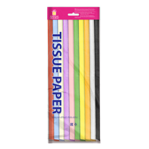 Набор бумаги пастельного тона состоит из 20 листов, представленных в 10 цветах, формата 50х66 см и имеет плотность 17 г/м2. Бумага упакована в пакет с отверстием для подвешивания. Если вы творческий человек и увлекаетесь поделками из бумаги тишью, то благодаря данному отверстию вы можете организовать хранение бумаги в наглядном, доступном месте, подвесив ее над своим рабочим местом. Ваши творческие идеи оживут от одного прикосновения к этой бумаге! Она позволит вам раскрыться в полной мере, как дизайнеру, при оформлении подарков на свадьбы, дни рождения, памятные даты!