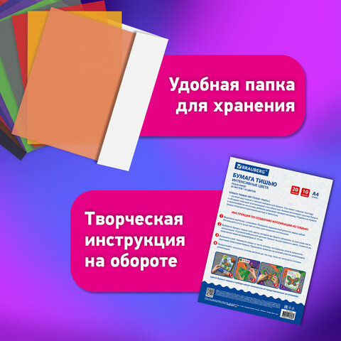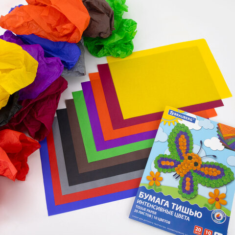 Тип бумаги: двусторонняя, матовая Внутренний блок: офсет Формат: А4 Количество листов: 20 Цвет: ассорти Количество цветов: 10 Тип товара: бумага тишью в папке Плотность бумаги: 17 г/м2 Прокрас бумаги: с 2 сторон Дизайн: Бабочка Ширина: 210 мм Длина: 297 мм Обложка: мелованный картон Индивидуальная упаковка: да Упаковка: папка