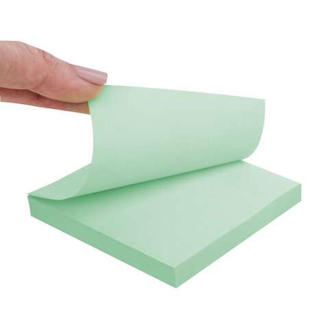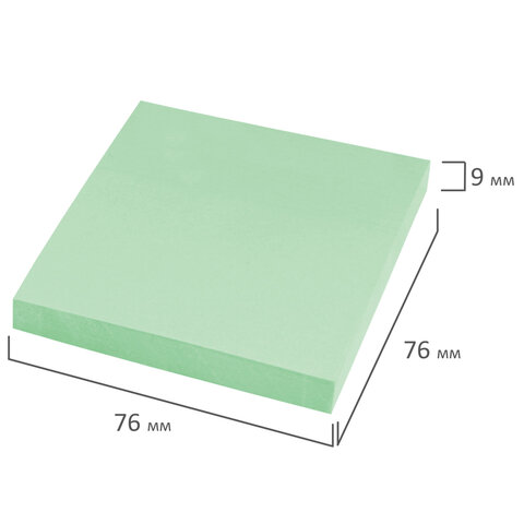 Блок самоклеящийся (стикеры) STAFF STANDARD, ПАСТЕЛЬНЫЙ 76х76 мм, зеленый, 100 листов, 116575