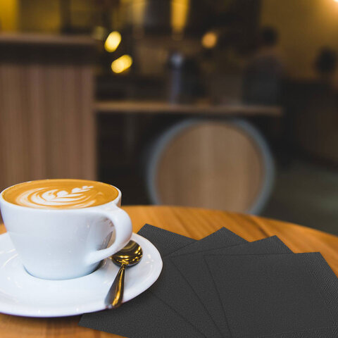 Упаковка содержит 200 салфеток размером 33х33 см. Двухслойные салфетки 1/4 сложения выполнены в классическом черном цвете. Тиснение придает изделию привлекательный внешний вид. Изготовлены из 100% целлюлозы, что обеспечивает прочность и повышенную впитываемость.