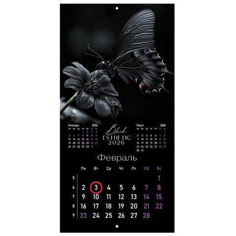 Тип календаря: настенный перекидной Год: 2026 Тип скрепления: скрепка Размер: 28,5х28,5 см Внутренний блок: мелованная бумага Плотность внутреннего блока: 130 г/м2 Подложка: нет Курсор: да Дизайн: Black esthetic Календарная сетка: с разбивкой на месяц Индивидуальная упаковка: да