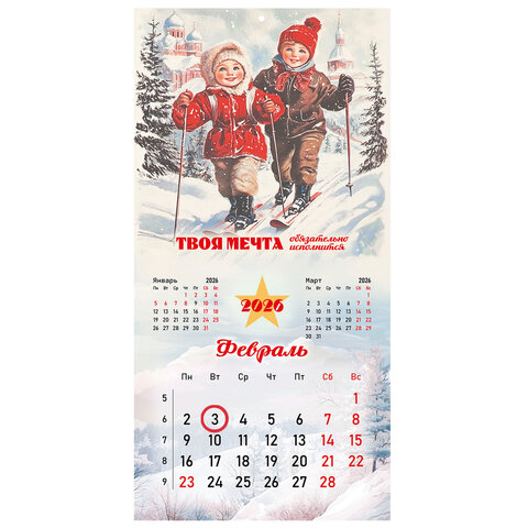 Тип календаря: настенный перекидной Год: 2026 Тип скрепления: скрепка Размер: 28,5х28,5 см Внутренний блок: мелованная бумага Плотность внутреннего блока: 130 г/м2 Подложка: нет Курсор: да Дизайн: Советские плакаты Календарная сетка: с разбивкой на месяц Индивидуальная упаковка: да