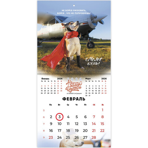 Тип календаря: настенный перекидной Год: 2026 Тип скрепления: скрепка Размер: 21,4х21,4 см Внутренний блок: мелованная бумага Плотность внутреннего блока: 130 г/м2 Подложка: нет Курсор: да Дизайн: Не падай духом Календарная сетка: с разбивкой на месяц Индивидуальная упаковка: да