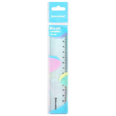 Линейка из прочного тонированного пластика пастельных цветов. Имеет безопасные закруглённые углы. Линейка обладает четкой разметкой, что делает ее удобной в использовании. Длина шкалы составляет 15 см. Поставляется в нескольких вариантах цвета (без возможности выбора). Упакована в пластиковый пакет с подвесом.