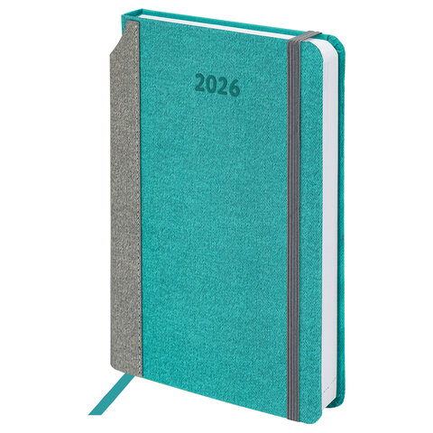 Тип ежедневника: датированный Формат: А5 Обложка: под комбинированную кожу Вид обложки: твердая Количество листов: 168 шт. Особенности: закладка-ляссе, комбинированная обложка, перфорация уголков, поролоновая прослойка, скругленные углы, справочная информация, фиксатор для ручки Серия: Mosaic Год: 2026 Тип застежки: резинка-фиксатор Основной цвет обложки: бирюзовый Дополнительный цвет обложки: серый Цвет среза: белый Цвет внутреннего блока: белый Плотность внутреннего блока: 70 г/м2 Высота строки для записи: 4 мм Тип крепления: сшивка Печать блока: 2 краски Подходит для блинтового тиснения: да Подходит для тиснения фольгой: да Подходит для заливки полимерной смолой: да Подходит для УФ-печати: да Подходит для тампопечати: да Длина: 213 мм Ширина: 138 мм Толщина: 20 мм