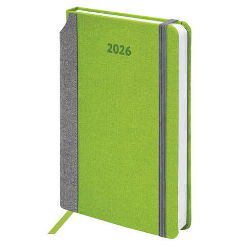 Тип ежедневника: датированный Формат: А5 Обложка: под комбинированную кожу Вид обложки: твердая Количество листов: 168 шт. Особенности: закладка-ляссе, комбинированная обложка, перфорация уголков, поролоновая прослойка, скругленные углы, справочная информация, фиксатор для ручки Серия: Mosaic Год: 2026 Тип застежки: резинка-фиксатор Основной цвет обложки: зеленый Дополнительный цвет обложки: серый Цвет среза: белый Цвет внутреннего блока: белый Плотность внутреннего блока: 70 г/м2 Высота строки для записи: 4 мм Тип крепления: сшивка Печать блока: 2 краски Подходит для блинтового тиснения: да Подходит для тиснения фольгой: да Подходит для заливки полимерной смолой: да Подходит для УФ-печати: да Подходит для тампопечати: да Длина: 213 мм Ширина: 138 мм Толщина: 20 мм