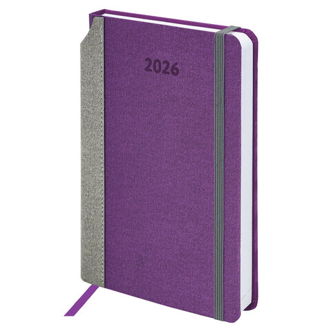 Тип ежедневника: датированный Формат: А5 Обложка: под комбинированную кожу Вид обложки: твердая Количество листов: 168 шт. Особенности: закладка-ляссе, комбинированная обложка, перфорация уголков, поролоновая прослойка, скругленные углы, справочная информация, фиксатор для ручки Серия: Mosaic Год: 2026 Тип застежки: резинка-фиксатор Основной цвет обложки: фиолетовый Дополнительный цвет обложки: серый Цвет среза: белый Цвет внутреннего блока: белый Плотность внутреннего блока: 70 г/м2 Высота строки для записи: 4 мм Тип крепления: сшивка Печать блока: 2 краски Подходит для блинтового тиснения: да Подходит для тиснения фольгой: да Подходит для заливки полимерной смолой: да Подходит для УФ-печати: да Подходит для тампопечати: да Длина: 213 мм Ширина: 138 мм Толщина: 20 мм