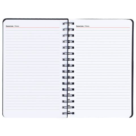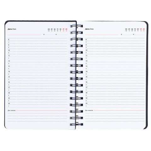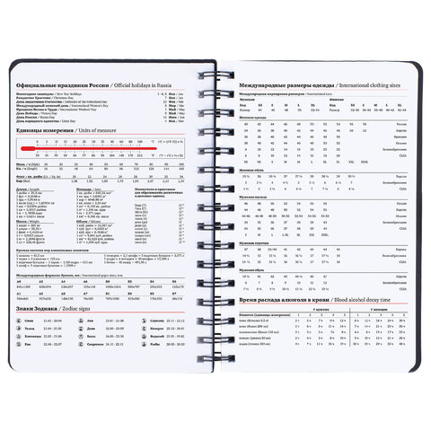 Внутренний блок включает 160 листов белой бумаги плотностью 70 г/м2. Благодаря стандартному формату А5 (135х210 мм) ежедневник удобно использовать как в офисе, так и на выездных деловых встречах.