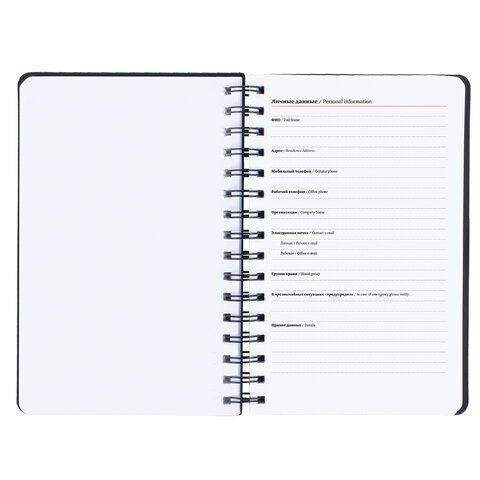Внутренний блок включает 160 листов белой бумаги плотностью 70 г/м2. Благодаря стандартному формату А5 (135х210 мм) ежедневник удобно использовать как в офисе, так и на выездных деловых встречах.