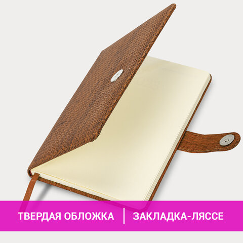 Внутренний блок включает 64 листа тонированной бумаги плотностью 70 г/м2. Благодаря стандартному формату А5 (145х215 мм) еженедельник удобно использовать как в офисе, так и на выездных деловых встречах. Твердая обложка, стилизованная под кожу с текстурной выработкой, фиксируется магнитной застежкой, поэтому еженедельник не откроется в сумке или портфеле и страницы не помнутся. Подходит для горячего тиснения. Еженедельник выполнен в коричневом цвете.