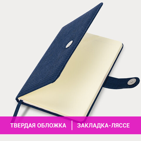 Внутренний блок включает 64 листа тонированной бумаги плотностью 70 г/м2. Благодаря стандартному формату А5 (145х215 мм) еженедельник удобно использовать как в офисе, так и на выездных деловых встречах. Твердая обложка, стилизованная под кожу с текстурной выработкой, фиксируется магнитной застежкой, поэтому еженедельник не откроется в сумке или портфеле и страницы не помнутся. Подходит для горячего тиснения. Еженедельник выполнен в темно-синем цвете.