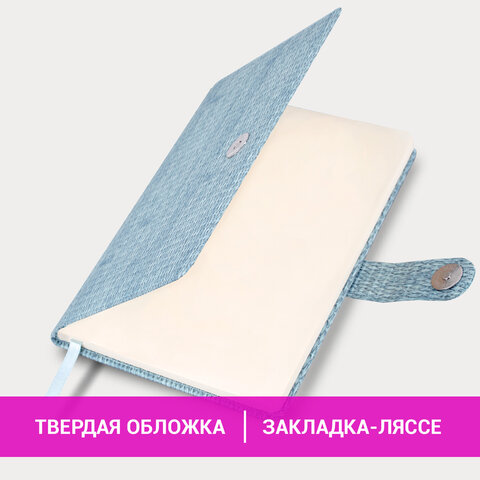 Внутренний блок включает 64 листа тонированной бумаги плотностью 70 г/м2. Благодаря стандартному формату А5 (145х215 мм) еженедельник удобно использовать как в офисе, так и на выездных деловых встречах. Твердая обложка, стилизованная под кожу с текстурной выработкой, фиксируется магнитной застежкой, поэтому еженедельник не откроется в сумке или портфеле и страницы не помнутся. Подходит для горячего тиснения. Еженедельник выполнен в голубом цвете.