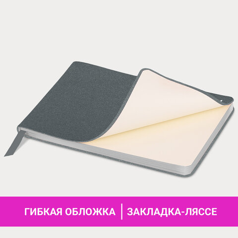 Внутренний блок включает 64 листа белой бумаги плотностью 70 г/м2. Благодаря малому формату А6 (105х160 мм) еженедельник удобно использовать как в офисе, так и на выездных деловых встречах. Гибкая обложка серого цвета, стилизованная под фактурную кожу с блеском, подходит для горячего тиснения.