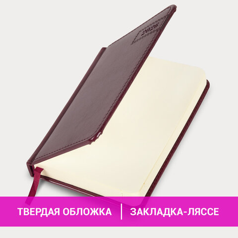 Тип ежедневника: датированный Формат: А6 Обложка: под гладкую кожу Вид обложки: твердая Количество листов: 168 шт. Особенности: закладка-ляссе, перфорация уголков, поролоновая прослойка, прострочка по периметру, скругленные углы, справочная информация Серия: Imperial Год: 2026 Тип застежки: нет Основной цвет обложки: бордовый Дополнительный цвет обложки: нет Цвет среза: кремовый Цвет внутреннего блока: кремовый Плотность внутреннего блока: 70 г/м2 Высота строки для записи: 4 мм Тип крепления: сшивка Печать блока: 2 краски Подходит для блинтового тиснения: да Подходит для тиснения фольгой: да Подходит для заливки полимерной смолой: да Подходит для УФ-печати: да Подходит для тампопечати: да Длина: 150 мм Ширина: 100 мм Толщина: 20 мм