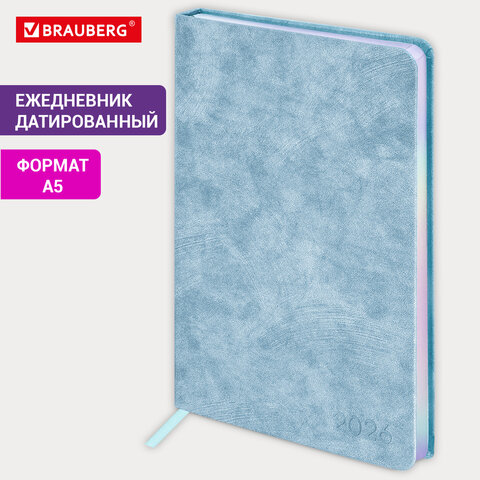 Тип ежедневника: датированный Формат: А5 Обложка: под текстурную кожу Вид обложки: твердая Количество листов: 168 шт. Особенности: закладка-ляссе, перфорация уголков, скругленные углы, справочная информация Серия: Ice Год: 2026 Тип застежки: нет Основной цвет обложки: голубой Дополнительный цвет обложки: нет Цвет среза: голографический Цвет внутреннего блока: белый Плотность внутреннего блока: 70 г/м2 Высота строки для записи: 4 мм Тип крепления: сшивка Печать блока: 2 краски Подходит для блинтового тиснения: да Подходит для тиснения фольгой: да Длина: 213 мм Ширина: 138 мм Толщина: 20 мм