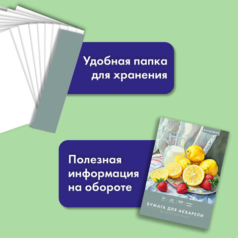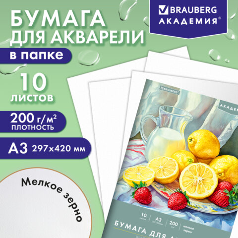 Папка для акварели BRAUBERG АКАДЕМИЯ предназначена для рисования всеми видами водорастворимых красок, а также подойдет для рисования карандашами, ручками и фломастерами. Бумага подходит для непрофессионального и детского рисования.
