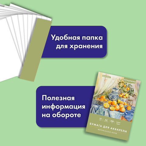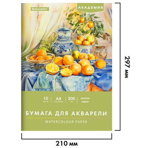 Папка для акварели BRAUBERG АКАДЕМИЯ предназначена для рисования всеми видами водорастворимых красок, а также подойдет для рисования карандашами, ручками и фломастерами. Бумага подходит для непрофессионального и детского рисования.