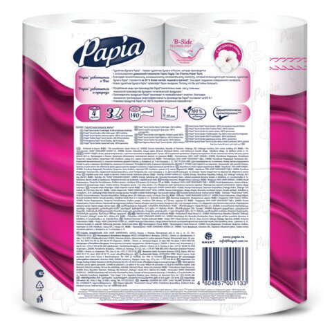 Сырье: 100% целлюлоза Количество слоев: 3 Тиснение: да Перфорация: да Спайка/комплект: 4 шт. Длина намотки: 16.5 м Доля вторичного сырья: 0 % Цвет: белый Аромат: Таинственный сад Диаметр рулона: 115 мм Ширина рулона: 9.5 см Втулка: да Внутренний диаметр втулки: 46 мм Количество листов в рулоне: 140 шт. Размер листа: 11,8х9,5 см Серия: PAPIA