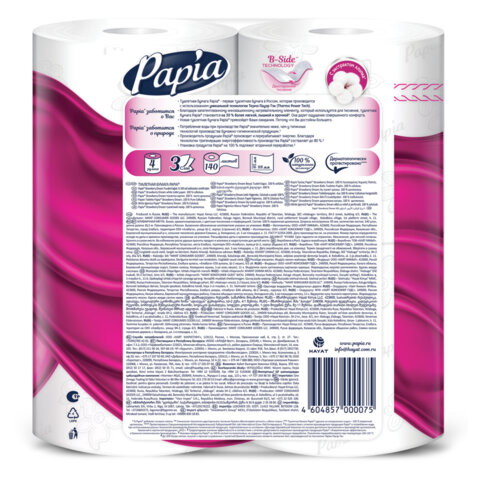 Сырье: 100% целлюлоза Количество слоев: 3 Тиснение: да Перфорация: да Спайка/комплект: 4 шт. Длина намотки: 16.5 м Доля вторичного сырья: 0 % Цвет: белый Аромат: Клубника Диаметр рулона: 115 мм Ширина рулона: 9.5 см Втулка: да Внутренний диаметр втулки: 46 мм Количество листов в рулоне: 140 шт. Размер листа: 11,8х9,5 см Серия: PAPIA