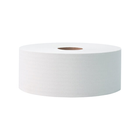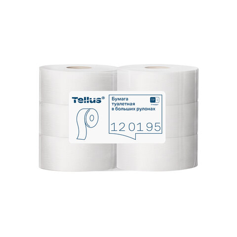Туалетная бумага однослойная в больших рулонах Tellus категории качества Стандарт удовлетворяет базовые потребности, предлагая экономичное решение для помещений с высокой проходимостью.