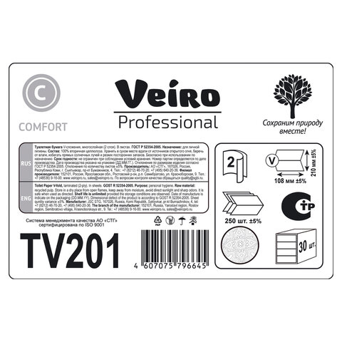 Туалетная бумага в листах VEIRO Professional используется в местах с повышенным требованием к гигиене. Изготовлена из сырья высокого качества. Подходит для диспенсерной системы T3.