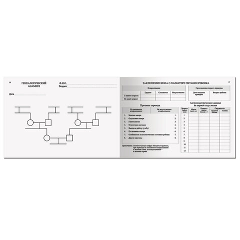 Бланк формата А5 (218х153 мм) содержит 96 листов офсетной бумаги. Твердая обложка с матовой ламинацией в сочетании с книжным переплетом обеспечивает изделию хорошую износоустойчивость. Горизонтальная ориентация. Соответствует государственным стандартам документального ведения учета. Утвержден Министерством здравоохранения.