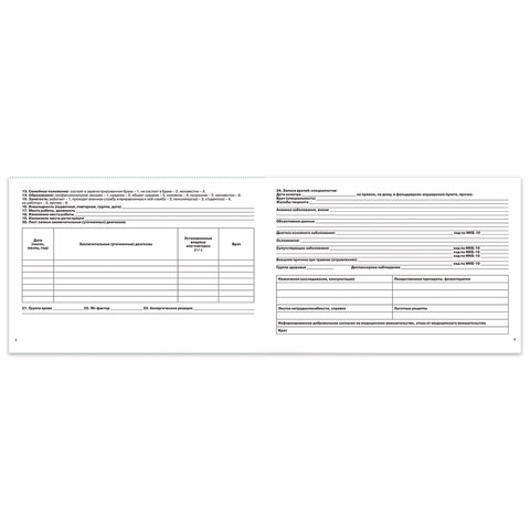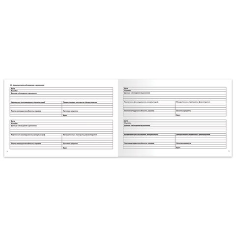 Бланк формата А5 (218х153 мм) содержит 144 листа офсетной бумаги. Твердая обложка с матовой ламинацией в сочетании с книжным переплетом обеспечивает изделию хорошую износоустойчивость. Горизонтальная ориентация. Соответствует государственным стандартам документального ведения учета. Утвержден Министерством здравоохранения.
