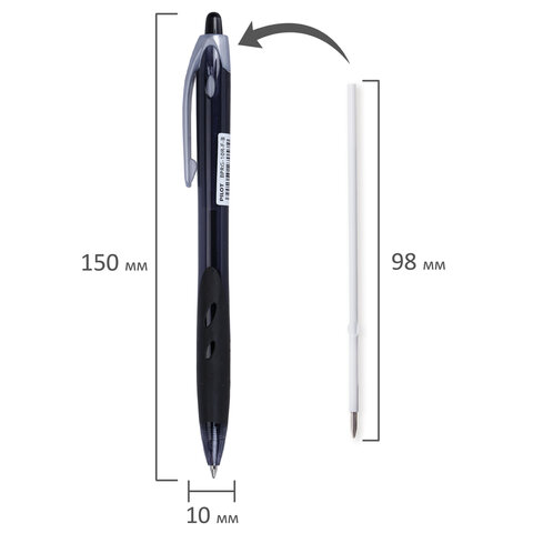 Автоматическая шариковая ручка с резиновым упором для пальцев. Чернила на масляной основе.