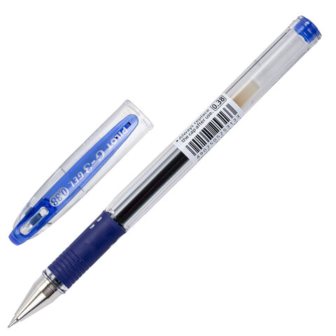Ручка гелевая с грипом PILOT G-3 имеет особо тонкий пишущий узел диаметром всего 0,38 мм. Равномерная подача чернил и удобный прорезиненный упор для пальцев делают письмо легким и плавным, без усилий, оставляя на бумаге линию толщиной всего 0,2 мм. Ручка изготовлена из прозрачного пластика, что позволяет контролировать уровень чернил. Цвет чернил соответствует цветным элементам корпуса. Ручка не течет, не пачкает, линия не прерывается.