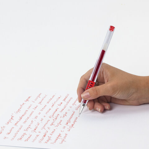 Гелевая ручка с удобным резиновым упором для пальцев. Обеспечивает мягкое письмо.