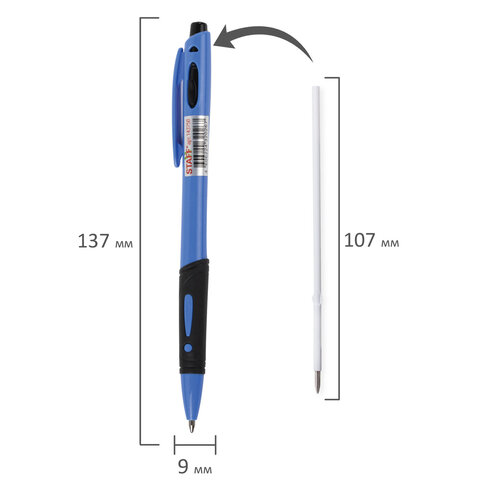 Автоматическая шариковая ручка STAFF "BP-16 Neon" с ярким дизайном и удобной прорезиненной зоной захвата.