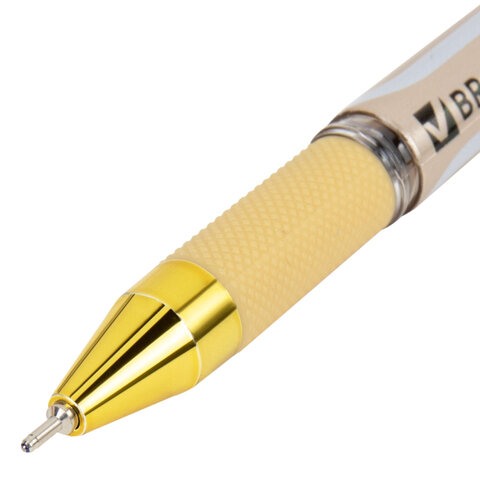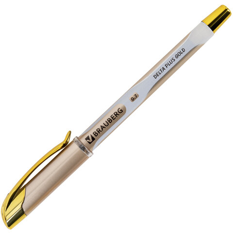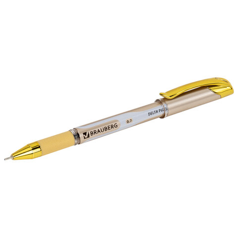 Шариковая масляная ручка с грипом BRAUBERG "Delta Plus Gold" представлена в насыщенном золотистом дизайне и динамичном, лаконичном корпусе, привлекая внимание и создавая ощущение премиальности в каждом штрихе.
