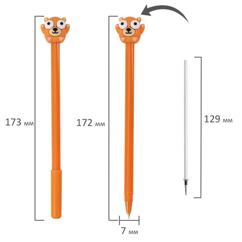 Тип ручки: шариковая Цвет чернил: синий Толщина линии письма: 0.35 мм Диаметр пишущего узла: 0.7 мм Серия: С ТОППЕРОМ Длина сменного стержня: 129 мм Форма наконечника: стандартный Покрытие корпуса: - Форма корпуса: с топпером Цвет корпуса: ассорти Дизайн: Животные Упаковка: пластиковая туба