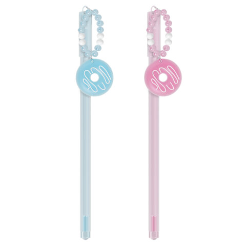 Надежный круглый корпус ручки выполнен в двух дизайнах ассорти розового и голубого цвета. Колпачок ручки дополнен подвеской с аппетитным пончиком – дизайн, который станет украшением любого рабочего пространства.