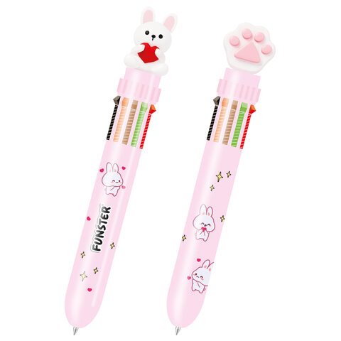 Ручка многоцветная FUNSTER "WOW" включает целую палитру цветов в одном корпусе и оснащена десятью стержнями: синий, черный, красный, зеленый, голубой, розовый, оранжевый, фиолетовый, желтый, коричневый. Простое переключение кликом между стержнями позволит делать записи и выделять важные заметки еще проще и быстрее. Удобный пишущий узел 0,7 мм обеспечит тонкую линию письма толщиной 0,35 мм.