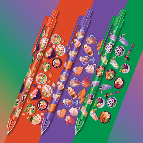 Ручка шариковая автоматическая FUNSTER "TASTY FOOD" – яркий и надежный пишущий инструмент для ежедневного использования. Ручка перенесет важные заметки на бумагу, а красочный дизайн с аппетитными блюдами вдохновит на новые идеи.