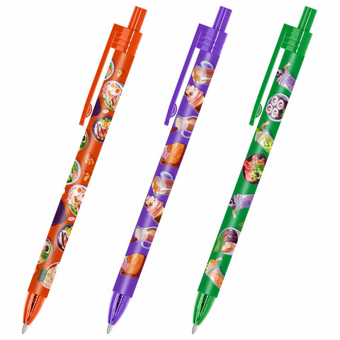 Ручка шариковая автоматическая с принтом FUNSTER "TASTY FOOD", корпус soft-touch, СИНЯЯ,...