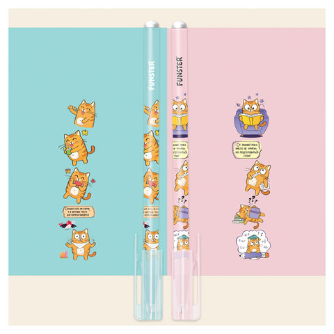 Стираемая гелевая ручка FUNSTER "КОТ-ЭНТУЗИАСТ" – универсальный помощник для ведения аккуратных записей за счет обесцвечивающихся термочернил и специального ластика, позволяющего вносить корректировки в текст сразу после написания.