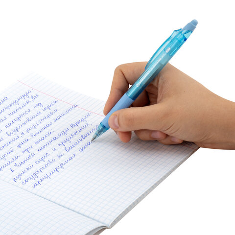 Автоматическая гелевая ручка BRAUBERG "X-ERASE RT" позволяет писать синими чернилами с линией толщиной 0,5 мм и с пишущим узлом 0,7 мм. Специальные гелевые чернила становятся невидимыми при нагревании до 60 °С и выше. Написанное можно восстановить при температуре ниже -18 °С. В ручку встроен ластик, что обеспечивает возможность многократного стирания и повторного письма. Записи также можно стереть любым другим ластиком. Удобная прорезиненная зона захвата гарантирует комфорт при использовании. Ассорти из 4 пастельных цветов: бирюзовый, нежно-розовый, салатовый, голубой.